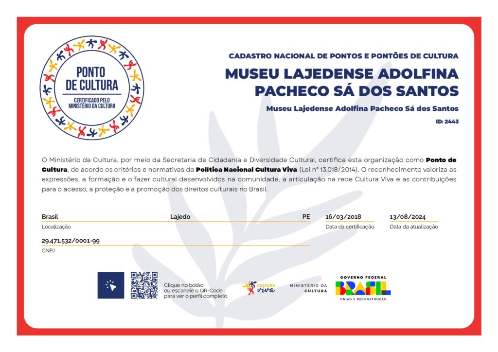 📍 Apoiar o museu é investir na educação, cultura e cidadania do povo lajedense.